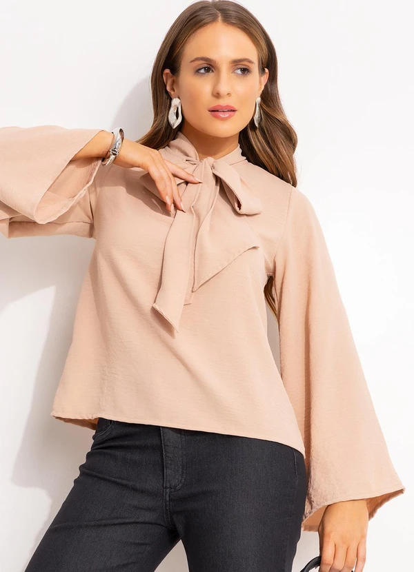 Quintess - Blusa Bege em Crepe Plano
