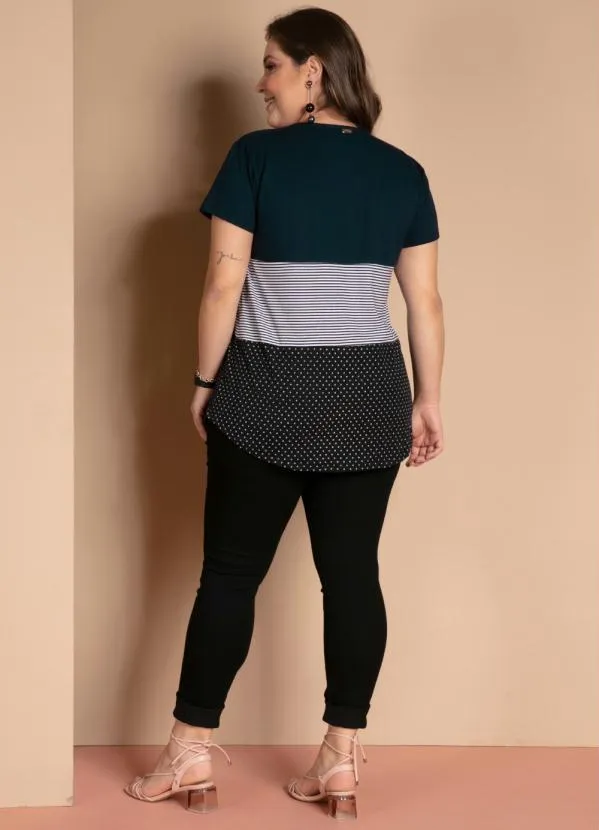 Quintess - Blusa com Botões Frontais Listras e Marinho