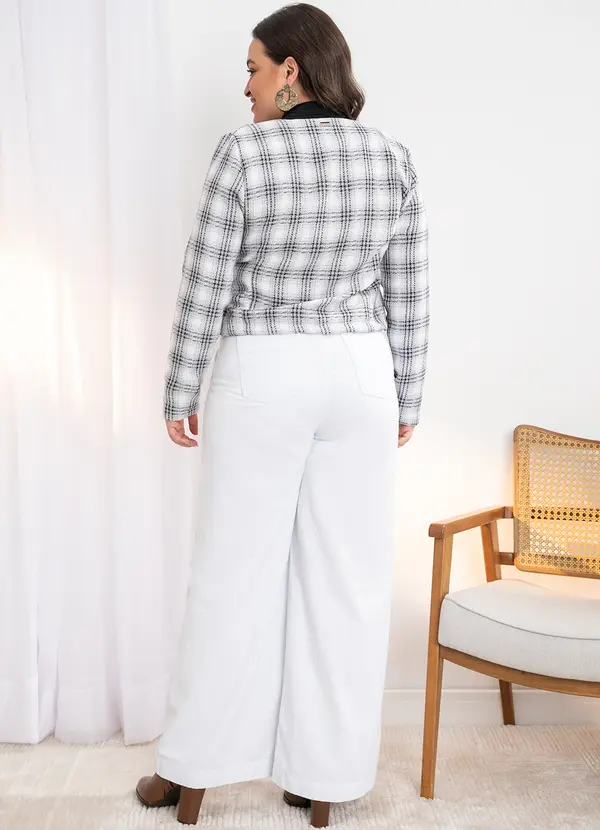 Quintess - Casaco em Tweed Xadrez Cinza com Pérolas