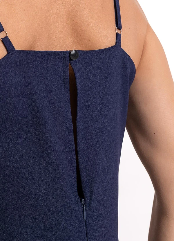 Quintess - Macacão Azul Marinho em Crepe Plano