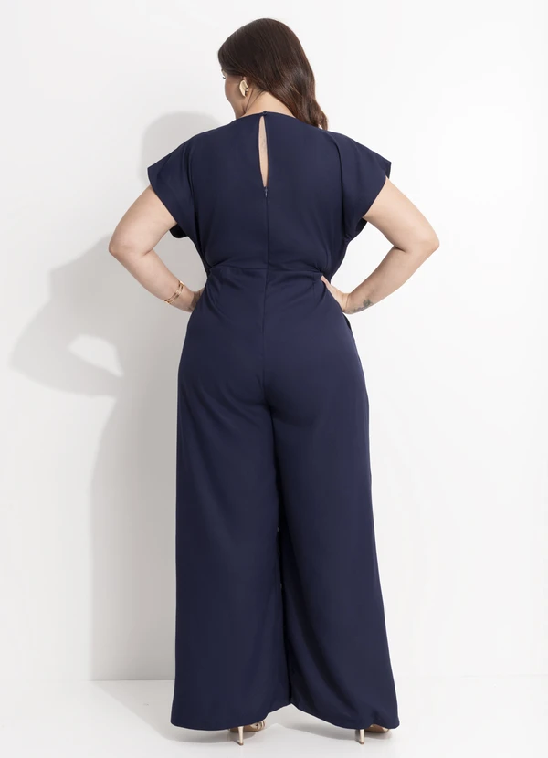 Quintess - Macacão Azul Marinho em Crepe Plano