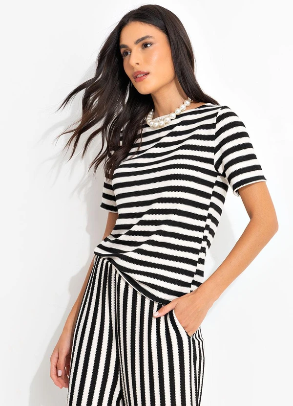 Quintess - Blusa Listrado Preto e Branco em Malha Tricô