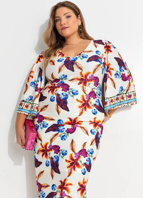 Quintess - Vestido Barrado Floral em Malha Fria