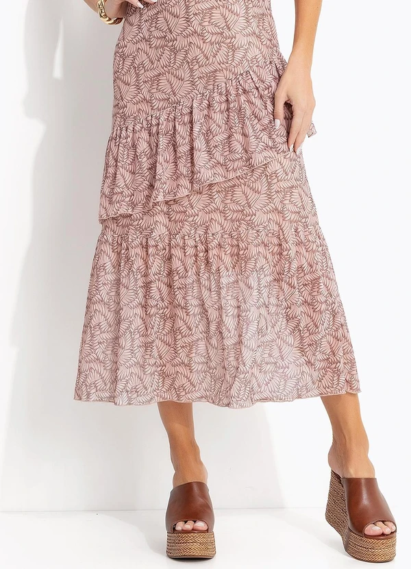 Quintess - Vestido Folhagem Marrom em Tule